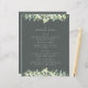 A dark gray green, winter wedding drinks/bar menu. Featuring an edging of hand painted snowberries and eucalyptus on the front and a wreath on the back. All text is fully editable, and the scattered dots on the front and back can be deleted before ordering if you would prefer. Coordinating items also available.