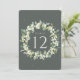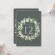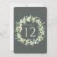 A dark gray green, double-sided wedding table number card featuring hand painted snowberries and eucalyptus arranged into a beautiful botanical wreath. All text is fully editable. Other designs, table number products and coordinating items are available in my store.
