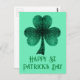 Green Sparkly Shamrock St. Patrick's Day card. Custom Saint Patrick's day card with Elegant clover in smaragd green sparkles glitters. Photo of sparkles not actual glitter!