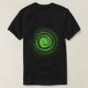A green flame fractal spiral t-shirt.
