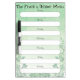 Our "Green Splash with Foliage Personalized Menu Dry Erase Board" features a green splashed background with a green watercolor-style foliage border. The menu boxes are a solid white for ease of writing. Also available from our shop is a companion shopping list notepad. Personalize and Order yours today and remove stress from your weekly meal decisions.