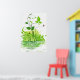 Decorative vector design of green plants with rose buds, next to a little stream of water. This green and white design can bring a fresh look to your walls decor. Customizable product.