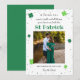 cute & simple St Patrick's day pregnancy announcement card during the holidays season with a personalized photo and clover design. Share with your friends and family the exciting news of your pregnancy!