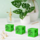Four-leaf clover favor boxes. Hand out bright green favors on St. Patrick’s Day and put them inside cute paper boxes. Dark green clover leaves cover boxes that come in many styles. “Happy St. Patrick’s Day” text wraps around the outside of the cube shape and is easy to change for a birthday or other gathering. The text may not show, or print in the correct place on other styles - so delete it. Perfect for a kid’s or adult’s celebration of the Irish holiday.