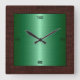 Green Stainless Steel Modern Burlap Border Square Wall Clock
