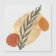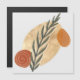 A boho inspired design of simples shapes in rustic colors of brown, beige, and orange with a floral plant stalk as the focus.