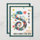 Send friends and family this traditional yet modern Chinese Lunar New Year greeting card to celebrate the upcoming Year of the Snake. The green stamp-style border frames a colorful snake image, set against a subtle background of traditional auspicious clouds. The Chinese characters for "Happy Chinese New Year" appear in both calligraphy and English, conveying your warm wishes for the year ahead. In Chinese culture The Snake symbolizes wisdom, elegance, beauty and rebirth. Astrologists say that the Year of the Snake is a time to plan carefully, avoid hasty decisions, and trust in intuition.