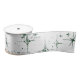 A cascade of delicate, deep green, twinkling stars on a bright white background cover this 3 inch wide ribbon, perfect for exquisite gift wrap details and diy craft projects