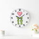 Green Stick Figure Couple Pink Heart Love Large Clock