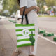 Green Stripe and Saguaro Monogrammed Personalized Tote Bag