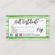 Promote your business in style with this green striped business gift certificate, featuring a fresh, modern striped background and space to personalise your logo, social media icons, contact information, value, expiration, and terms. Perfect for beauty salons, nail studios, spas, plant shops, garden centres, or boutique service providers, this card makes it easy for customers to give a thoughtful gift while showcasing your brand.