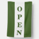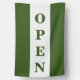 Green strip open sign flag with vertical lettering