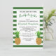 A modern bachelorette party invitation with green and white stripes with pineapples framing the invitation. The back of the invitation features a sparkle green background. ==============DESIGN TIP============= Use the customize button to resize and rearrange any of the text that does not work after customization.