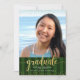 Be proud, rejoice and announce to the world that your favorite grad has reached their milestone with this stunning, simple, modern, personalized announcement invite. Sparkly, elegant, faux gold glitter handwritten calligraphy script, white sans serif typography and a photo of your choice overlay a hunter green striped background. Personalize the custom text with your graduate’s name, school name, class year, and graduation date. On the back, add your personal note, next school they’re attending, party information, etc. Matching and coordinating thank you cards, cap toppers, fans, napkins, plates, banners and other graduation goodies are also available in this trendy and stylish collection. Guaranteed to add stylish fun to their special occasion!