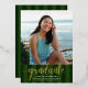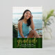 Be proud, rejoice and announce to the world that your favorite grad has reached their milestone with this stunning, simple, modern, personalized announcement invite. Sparkly, elegant, real gold foil calligraphy script, white sans serif typography and a photo of your choice overlay a hunter green striped background. Personalize the custom text with your graduate’s name, school name, class year, and graduation date. On the back, add your personal note, next school they’re attending, party information, etc. Matching and coordinating thank you cards, cap toppers, fans, napkins, plates, banners and other graduation goodies are also available in this trendy and stylish collection. Guaranteed to add stylish fun to their special occasion!