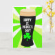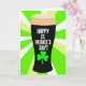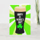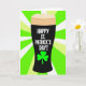This card features a stylized pint glass centered on the front, filled with a deep black stout and topped with a thick cap of creamy beige foam that looks smooth and inviting. Inside the glass, the greeting “HAPPY ST. PATRICK’S DAY!” appears in crisp white letters stacked in neat lines, making the message easy to read at a glance. Just beneath the words sits a bright green shamrock ☘️, like a small lucky token tucked close to the toast. The tight spacing between the text and clover gives the layout a close, companionable feel, as if the drink and charm are sharing the spotlight together. Behind everything, lime-green and white rays spread outward in a radial burst, adding energy without crowding the main image. The color mix—black, beige, white, and two greens—keeps the scene sharp and festive, with a friendly pop of 💚. The background shows alternating lime-green and white stripes radiating from behind the glass in a starburst pattern.