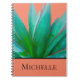 Desert garden notebook with a green succulent image on a peach background. With black trim and black customizable lettering, you can personalize with your own information. This lovely item is great for staying in style while staying organized with your school assignments.