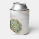 Personalize the elegant Green Succulent on White Wedding Can Coolers to create one of a kind party favors for your garden party inspo bridal shower or marriage reception. This classy personalized botanical can cooler features a digitally painted floral photograph of a green succulent plant with a white bridal veil on a white satin background.