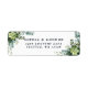 This return address label features painted watercolor succulent, eucalyptus, and botanical green leaves.