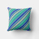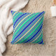 This throw pillow design features a pattern of stripes having colors like green, tan, and blue.
