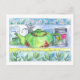 Green Tea Time Teapot Jasmine Flowers Postcard