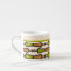 A chic little Espresso Mug to personalize with a decorative 'tribal' pattern in Green and Teal, outlined in Black, on a Cream Background, teamed with matching Polka Dots. Part of the Posh & Painterly "Jungle Drums" collection.