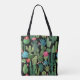 Green Teal Blooming Cacti Pattern Tote Bag