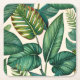 Green & Teal Palm Monstera Tropical Leaves Pattern Square Paper Coaster