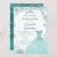 Green Teal Silver Winter Snowflake Quinceanera Invitation