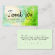 Chic and sophisticated, this is a sage, lime and emerald green, grunge abstract used as the background for a thank you, loyalty small business card. There's a message that says thank you for supporting my small business, and on the back there's a discount code for your customers next order.