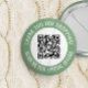 Promotional small business QR code button with a green border and your own QR code and custom text in a curve around your QR code. Thank you for shopping promo button personalized with your QR code and custom text.