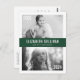 Invite family and friends to your event with this customizable then and now photo graduation invitation postcard. It features simple typography and a green bar accent. Personalize this now and then photo graduation invitation postcard by adding your details. This green photo graduation postcard is perfect for high school and college graduations.