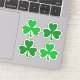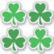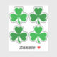 Stickers featuring green (or custom color) three leaf shamrock clovers.