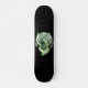 a decorative artwork of a tiger in surreal green colors. the big endangered cat with stripes on a black skateboard