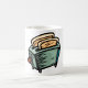 The humble toaster is something we all have in our kitchens. There is many different types of toasters and this design is a cool one of a two slice toaster with two slices of toast popping out of it. This toaster looks great on this mug. Perfect for yourself or as a gift