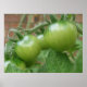 This beautiful print features a photograph of a bunch of unripe green cherry tomatoes growing on a tomato plant in a suburban garden. The photograph was taken using macro photography for a detailed result.