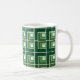 This mug has a geometric design made from Ls in shades of green laid in different directions repeating across the design.