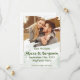 Let your photo of the happy couple show through a torn opening in a green and white background. Customize it with your wedding information.
