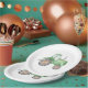 This tractor plate, featuring a green watercolor tractor, is perfect for a farm themed birthday party.