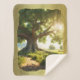 Cuddle up nice and cozy with a warm Sherpa blanket with a summer image of an old tree with sun filtering through the leaves.