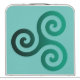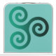 Green Triskele symbol. The Triskele or Triskelion symbol consists of three interlocked spirals or three arms as if it is moving from its center. This Celtic symbol of movement or action represents the three worlds; the celestial, physical, and spiritual.