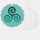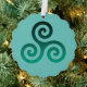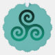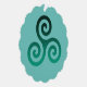 Green Triskele symbol. The Triskele or Triskelion symbol consists of three interlocked spirals or three arms as if it is moving from its center. This Celtic symbol of movement or action represents the three worlds; the celestial, physical, and spiritual.