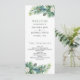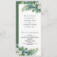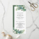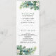 Peacock theme Indian wedding program featuring beautiful peacock feathers and tropical leaves.