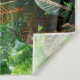Photo of green thickets in the rainforest. In the foreground is a huge Croton tree with large bright decorative leaves.