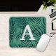 Green tropical leaves pattern mousepad personalized with a monogram initial in the center. Ideal women's home office supplies.