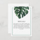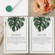 Showcases lush green monstera leaves and tropical palm fronds, paired with elegant and readable typography for a sophisticated yet natural look. Perfect for sharing additional wedding details such as accommodation options, transportation, dress code, or special instructions for guests.