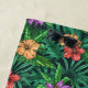 A Beautiful Beach Towel For Swimming Designed With Green Tropical Leaves And Colorful Hibiscus Flowers .