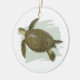 The ornament's front and back design features an image of an adult green turtle (a type of sea turtle) drawn from living turtles by artist Dawn Witherington. Dawn's personal encounters with sea turtles has lent realistic detail to her art.