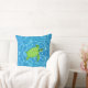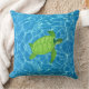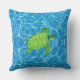 Green turtle on turquoise water throw pillow