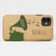 Quirky and unique Vintage Gramophone Case-Mate iPhone 5 Barely There Case in dark green featuring a silhouette of an old-fashioned gramophone and a cascade of musical notes on a digital art rendered paper background. This chic iPhone case will protect your phone with a dash of vintage flair and is perfect for any music lover. Easy to customize, simply personalize with the text of your choosing. Click on the "Customize It" button to find additional personalization options.